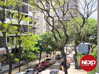 Amplio living comedor con pisos de parquet con gran ventanal con hojas corredizas con falso balcón, amplio hall de distribución, 2 cómodos dormitorios sumamente luminosos (ambos al frente) con placares incorporados, baño principal y baño de servicio, cocina con estar diario.